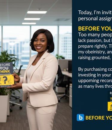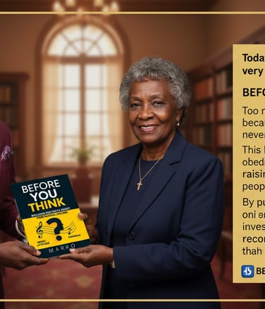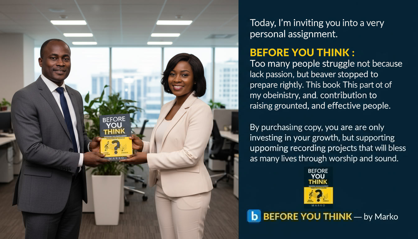Before You Think is a powerful guide designed to help individuals discover the truth about their musical potential. Through a carefully designed aptitude framework, the book helps readers assess their abilities, make informed decisions, and prepare themselves for effective music ministry. The principles shared in this book extend beyond music, offering a practical approach to evaluating purpose, passion, and readiness for any path in life.
